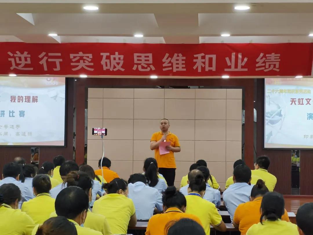 為了進(jìn)一步弘揚(yáng)和傳承公司“三個(gè)三”文化精神,讓“三個(gè)三”文化生根在員工心中,落地在公司的發(fā)展中,踐行在每名員工的行動(dòng)中,同時(shí)也為員工搭建展示才華的舞臺(tái),不斷充分挖掘員工的潛質(zhì),培養(yǎng)有激情、有活力的天虹人。8月3日,在公司26周年司慶來(lái)臨之際,開(kāi)展“天虹文化,我的理解”演講比賽。