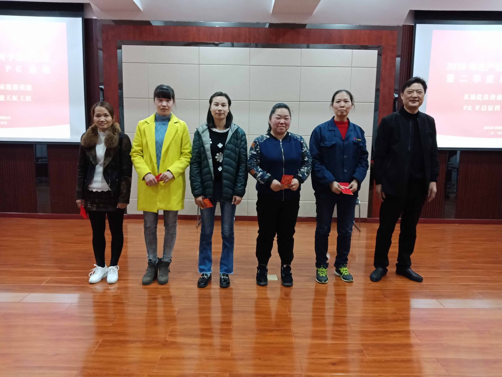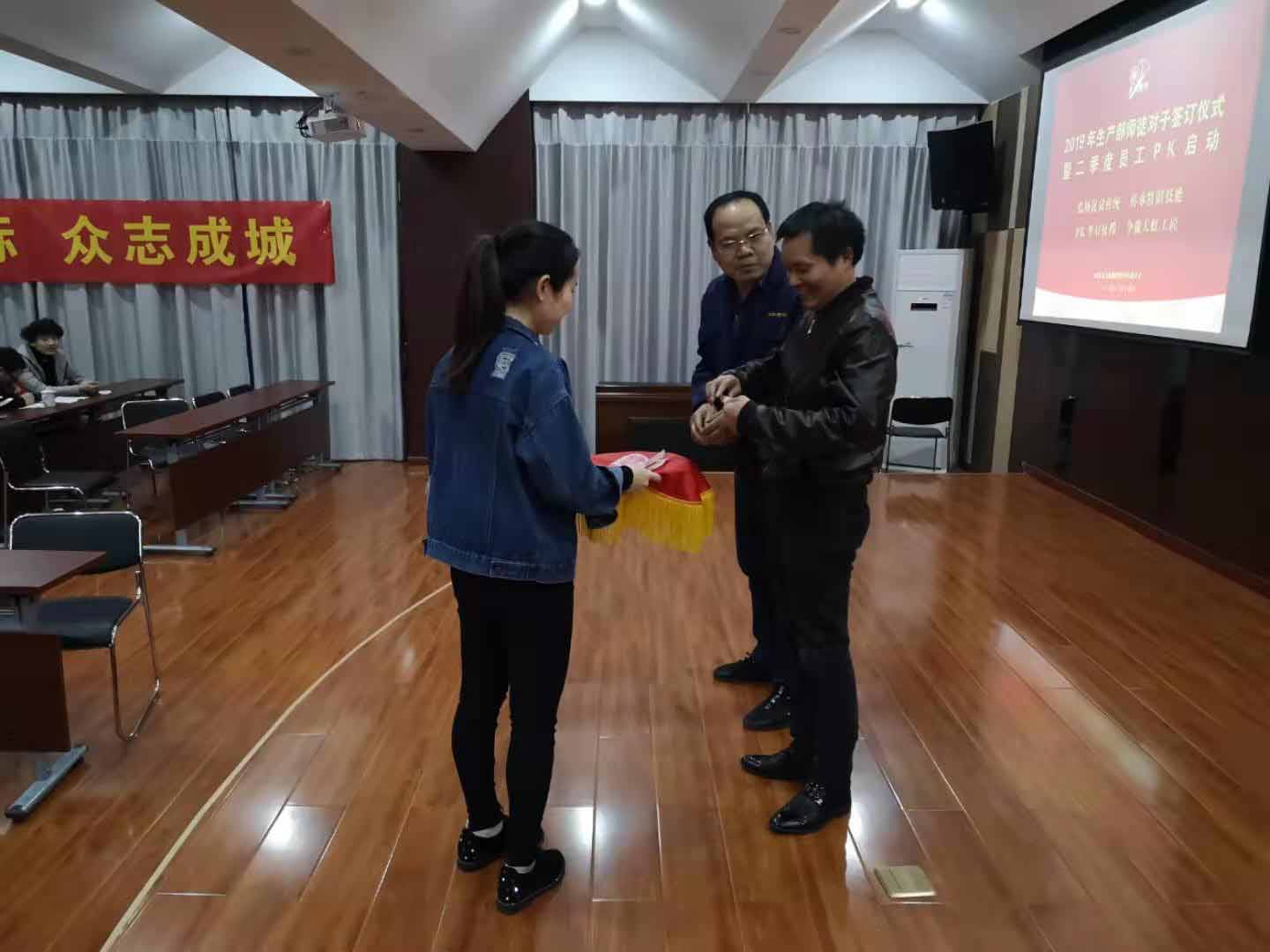 拜師的香茶仍溫,莊嚴(yán)的承諾余音繞梁,主持人緊接著又宣布2018年第四季度員工PK兌現(xiàn)和2019年第二季度員工PK啟動(dòng)。員工PK是自2018年第四季度開始舉辦,旨在將產(chǎn)品品質(zhì)、產(chǎn)出率、節(jié)能降耗等生產(chǎn)目標(biāo)通過員工間、班組間進(jìn)行PK的形式進(jìn)行提升和達(dá)成。