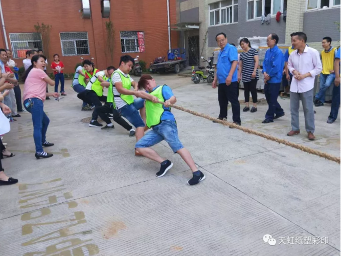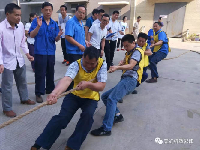 為提高員工團結協(xié)作和堅忍不拔的精神,增強各部門的凝聚力和戰(zhàn)斗力,為每個部門提供展現(xiàn)團隊集體風采的舞臺,促進五月份生產經(jīng)營目標的達成,2018年5月14日公司利用早會時間組織了一場熱鬧的撥河比賽。各部門組成6支隊伍參賽,通過一個小時的激烈比賽,辦公樓代表隊獲得冠軍,倉庫代表隊獲得亞軍,制袋代表隊獲得季軍。通過比賽培養(yǎng)了各部門的團隊精神,鼓舞了員工士氣,豐富了員工精神生活。